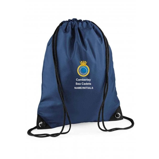 Navy Gym Bag with Camberley Sea Cadets logo embroidered on the front and the option to add your name below the logo.