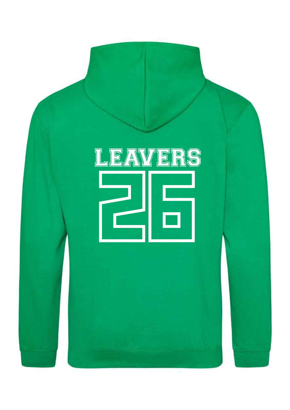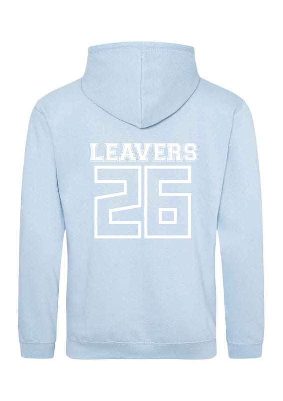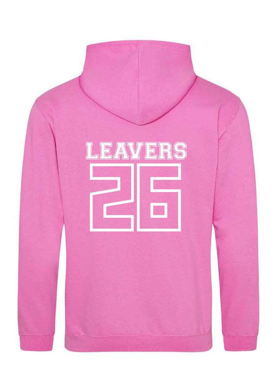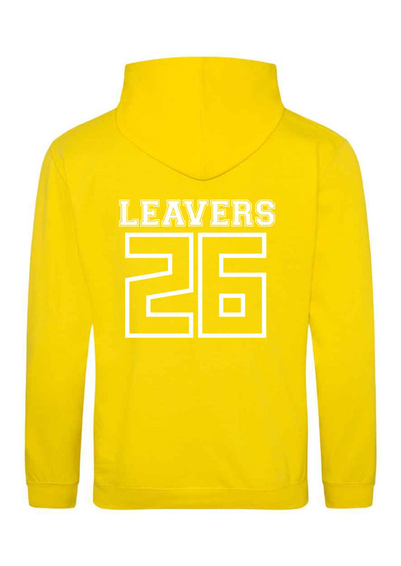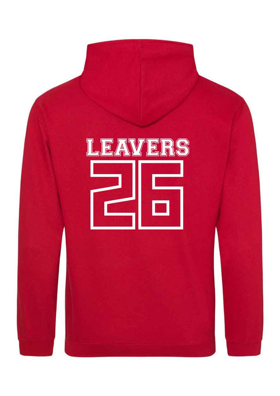 School Leavers Hoody for 2026 Leavers. Hoodies in various colours with school logo printed on the left breast and Leavers 26 with all the children’s names inside on the back. These will be delivered to school as one order on a date chosen by the school.